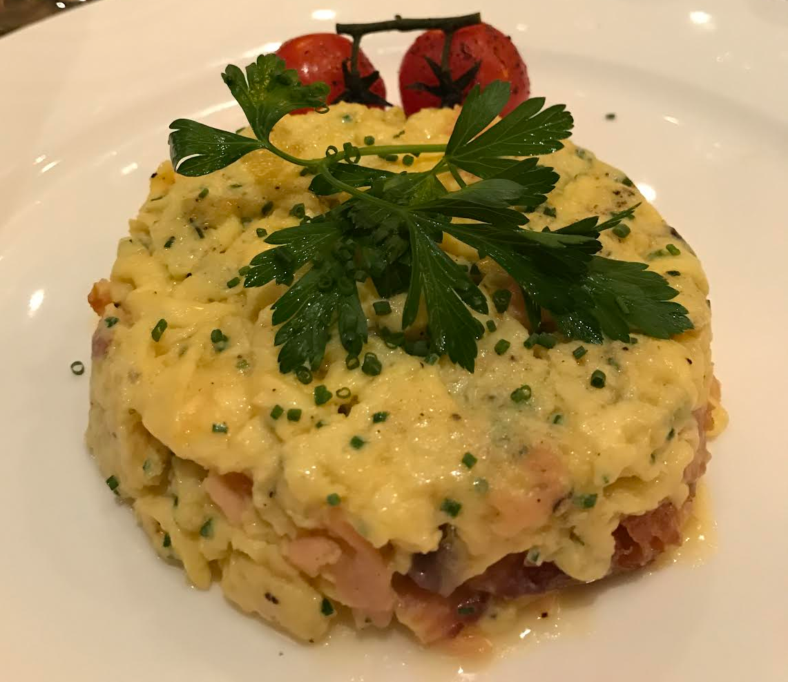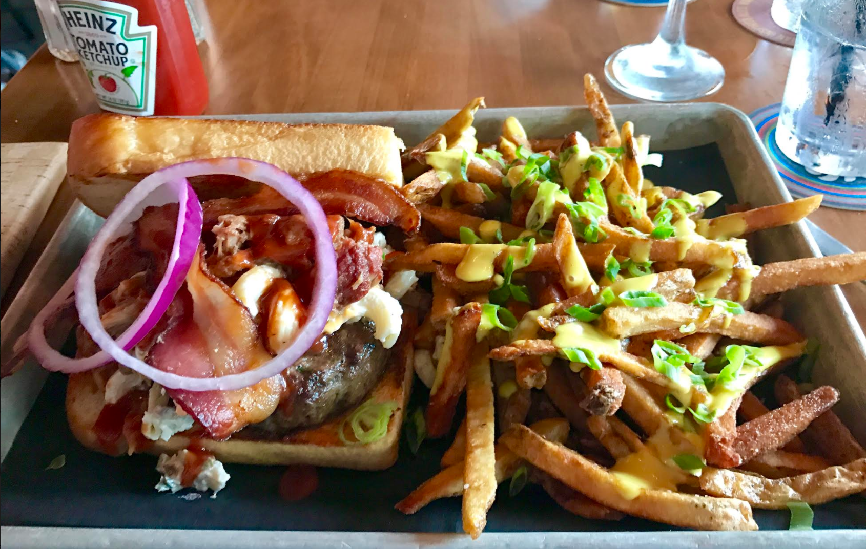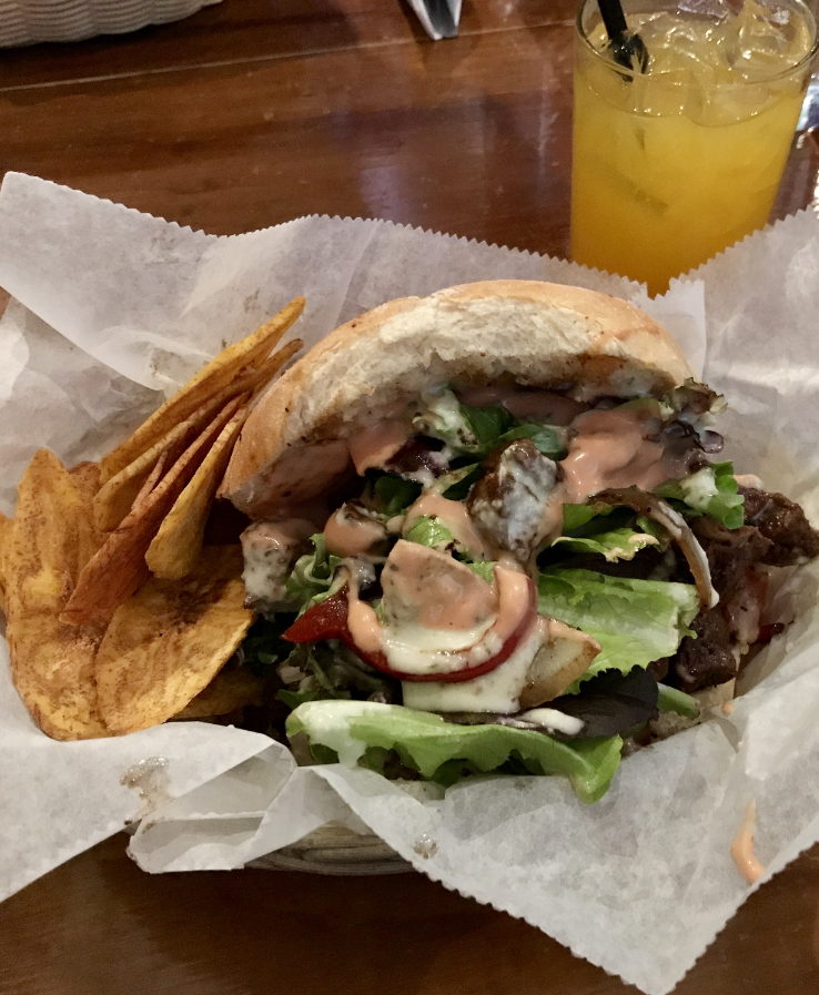 Lulu’s serves several burgers and Evan opted for the largest on the menu. The Miss Piggy Burger (as it is called) is served on texas toast, topped with pasta salad, pulled pork, bacon, bbq sauce, red onions and served with a side of fries that are drizzled with honey mustard and sprinkled with scallions. The order is so large that it is served on a metal tray. I only swiped a few fries so I cannot comment on the burger but it looked like a heart attack on a bun. Evan ate almost everything so I assume it was very good.