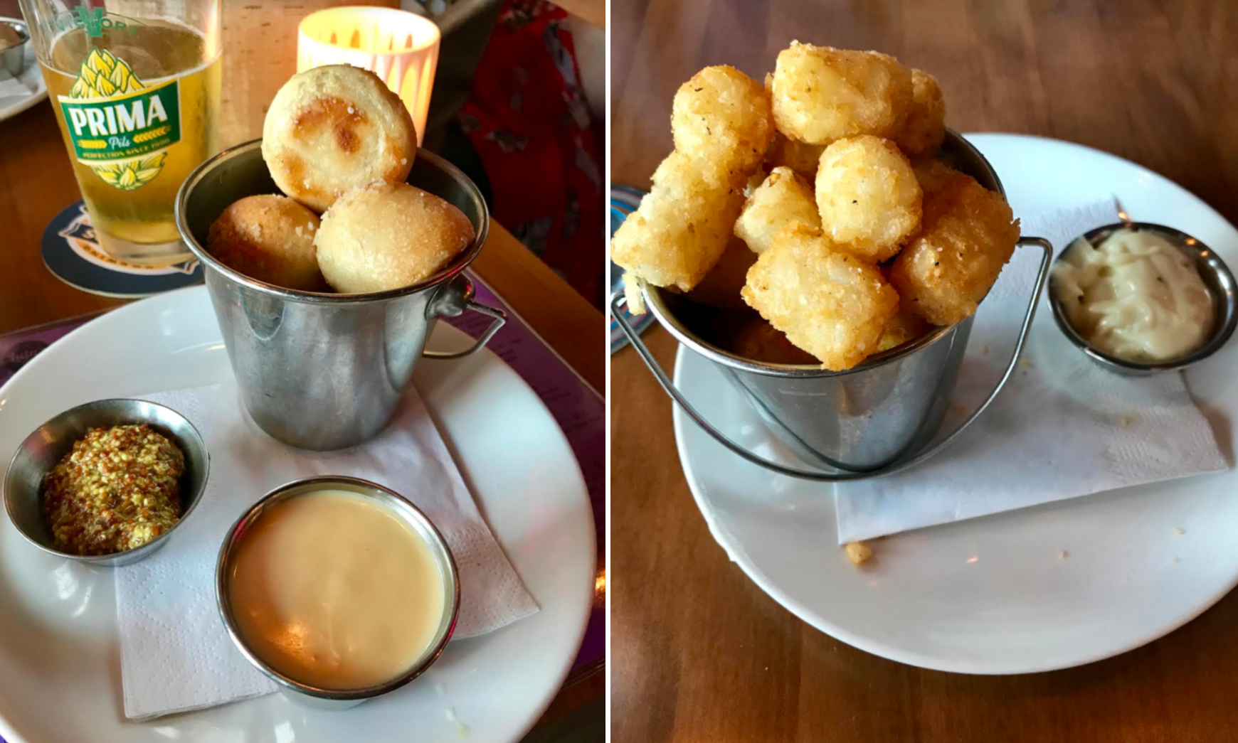 We started our dinner with orders of their Pretzels and Cajun Tots, which came out very warm served in tiny tin pales. The munchkin shaped pretzels were served with sides of cheese and mustard. I’m not sure what made the Tots Cajun since I didn’t taste any spices but I love tater tots so I was not disappointed. They were crispy on the outside and steamy warm and fluffy on the inside.