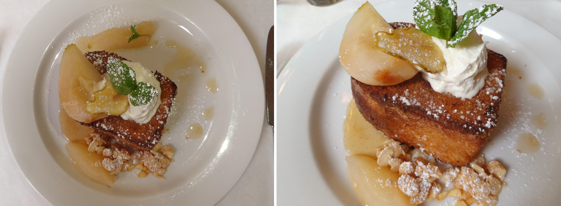 For dinner Sergio ordered one of his favorite plates, the house made Gnocchi ($24.50) which is shown above, and I splurged, ordering the Aragosta Arrosto ($38.50) shown below. I had thought I was ordering the lobster and pasta in a fra diavolo sauce but the Aragosta Arrosto was more flavorful than spicy with only a hint of pepper. Those looking for more heat to the sauce should probably make such a request when ordering. Having said that, the dinner exceeded my expectations. There was plenty of lobster from the tail and it was cooked perfectly. The pairing of the rich sauce, lobster meat and homemade pasta was so good that Sergio repeatedly poached food from my plate when I wasn’t looking.