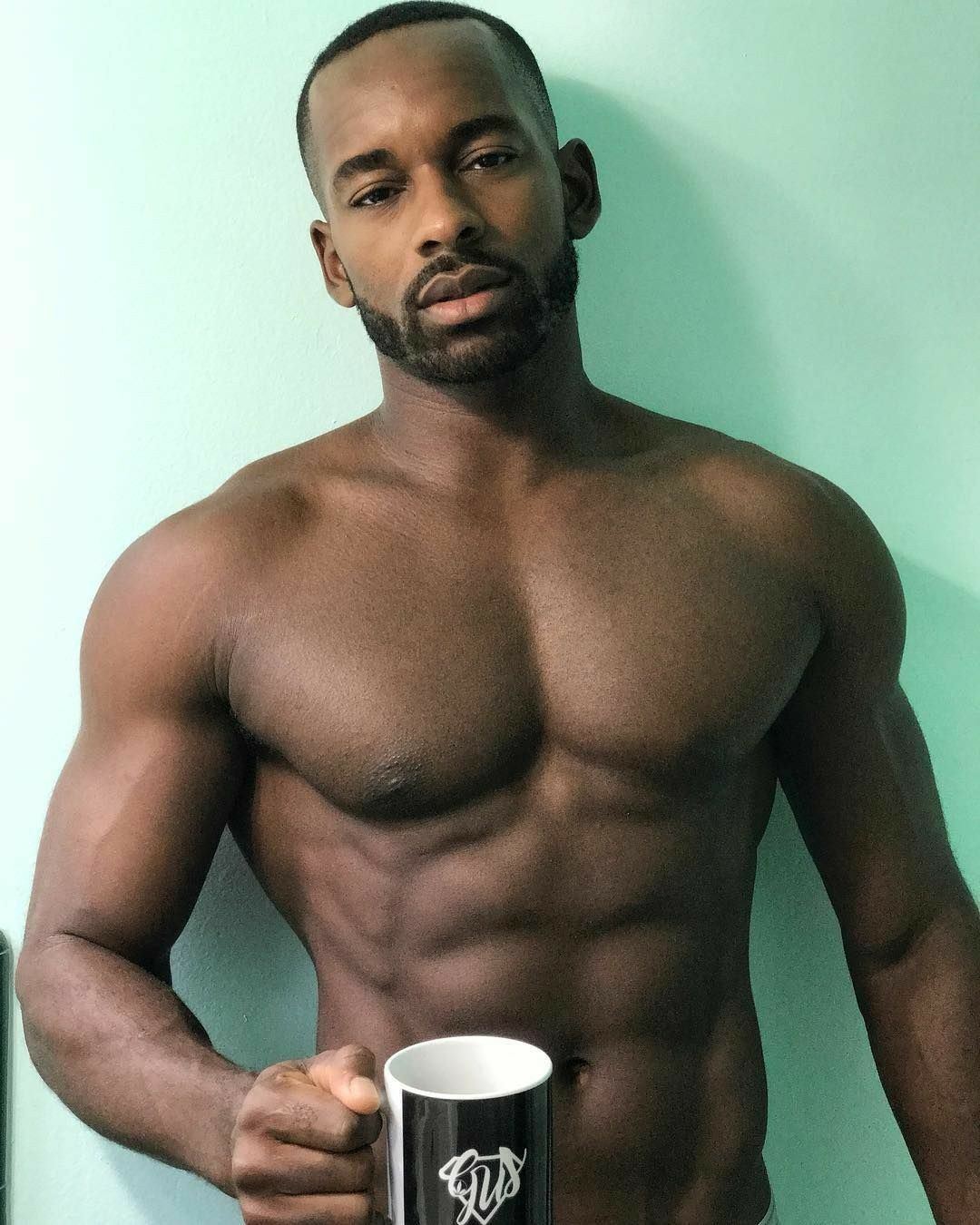 Tagged BosGuy, Boston Guy, coffee, gorgeous man, handsome, hunk, shirtless black man, shirtless man