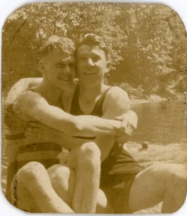 Are they friends or more? I’m guessing this was taken in the 1980s based on hairstyles and what looks like mid-80s Gap clothing. When do you think these two handsome men were photographed?